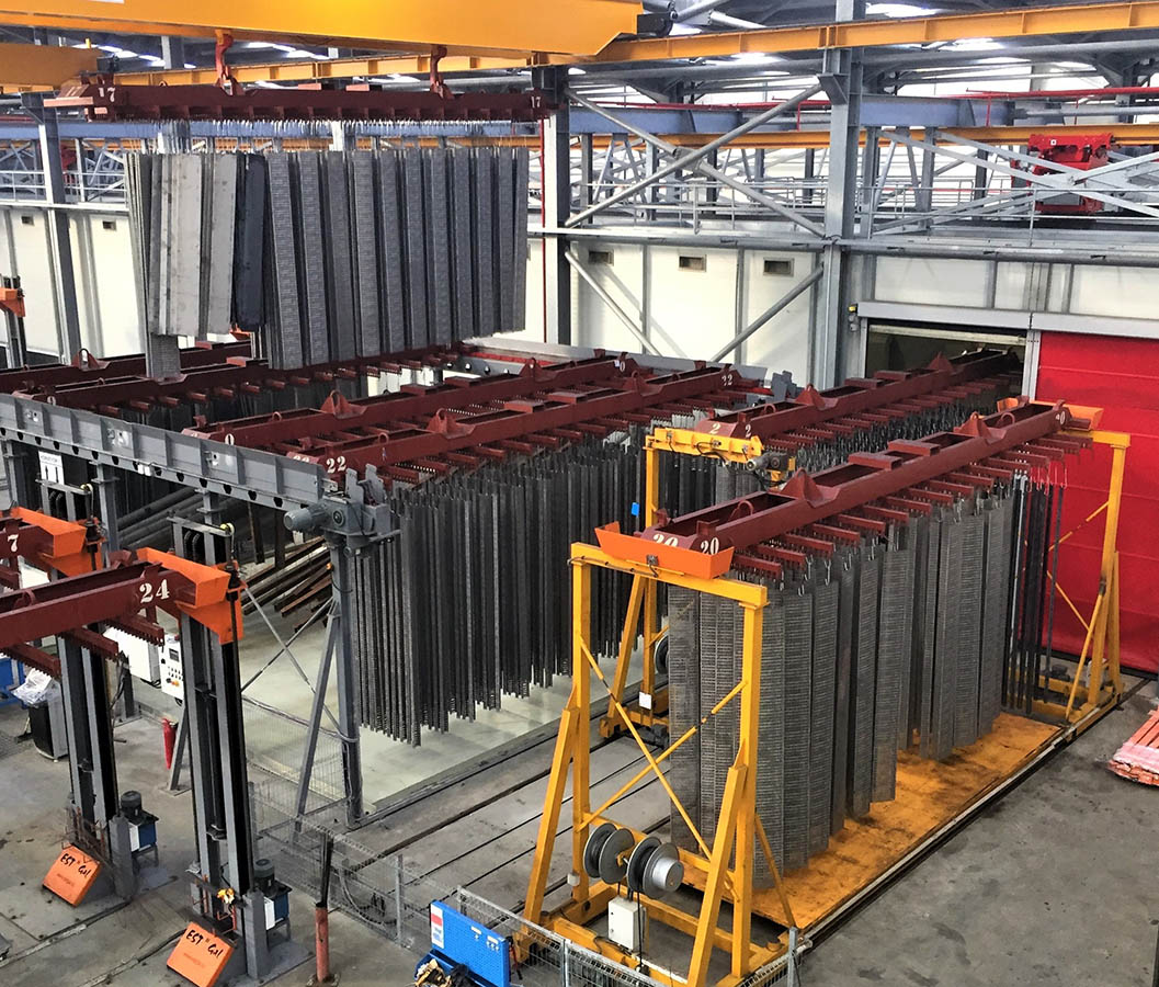 The Transport / carrying system provides efficient operation of the loaded jigs in the process. - Design according to the size of the loads to be carried, - Trolleys, - Chain Conveyor Systems, - Process Cranes - Transfer Cranes